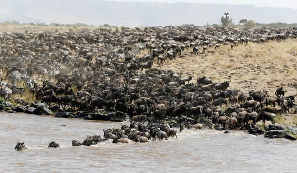 The great migration is associated with births and deaths of the animals with about 250,000 wildebeest dying due to predation, hunger, and thirst while on the journey.
